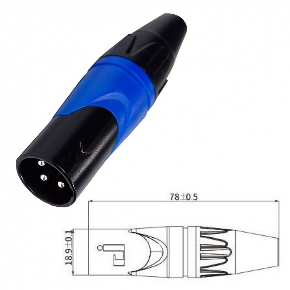 CONECTOR CANNON MACHO TZCR15 PROFISSIONAL PRETO ANEL AZUL