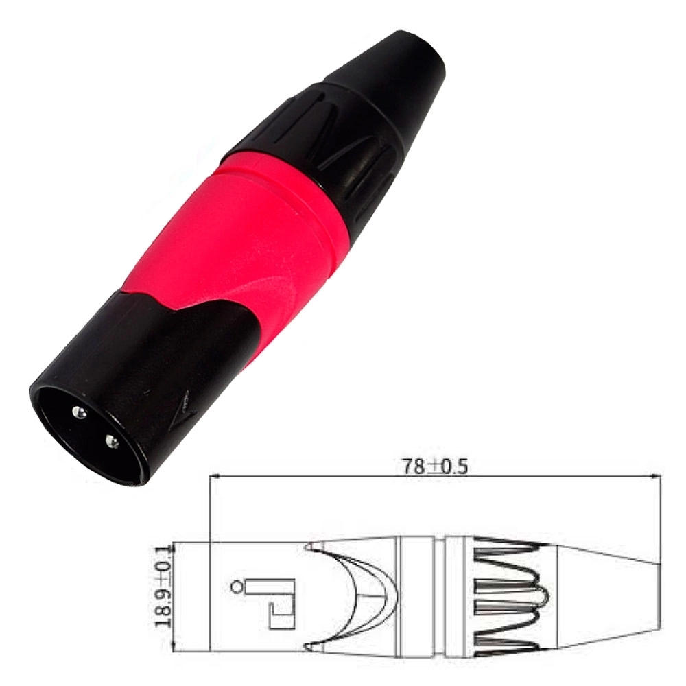 CONECTOR CANNON MACHO TZCR15 PROFISSIONAL PRETO ANEL VERMELHO