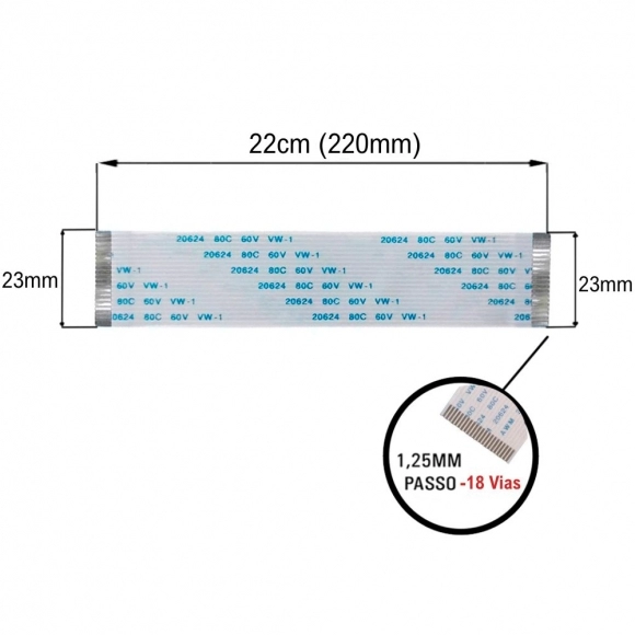 CABO FLAT CABLE 18 VIAS - 22CM X 23MM - PASSO 1.25 MM