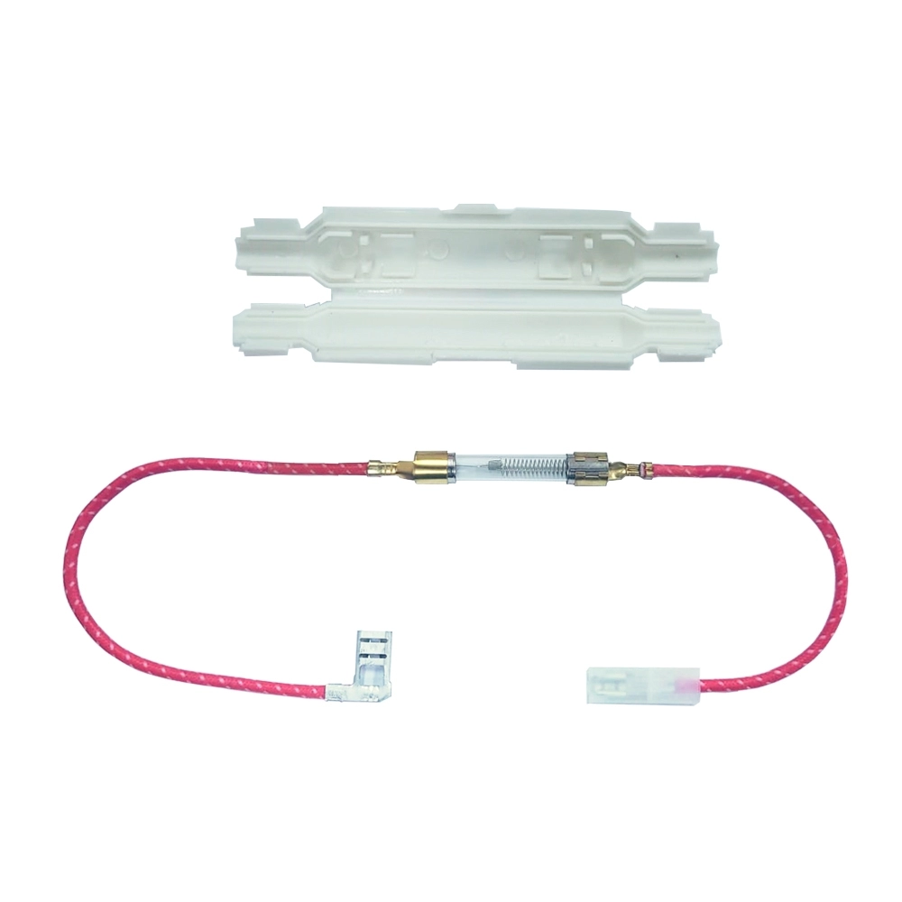 Porta-fusível com fusível 5kV 0,8A para micro-ondas é um componente de segurança de alta tensão, feito para interromper falhas no circuito do magnetron, usando fusível de vidro e suporte isolado, com dimensões padrão e conexão simples para manutenção.