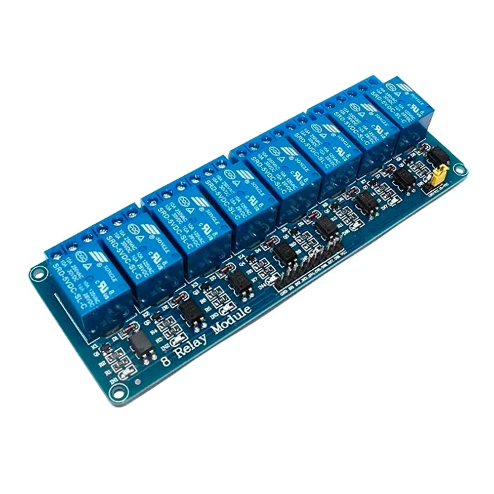O Módulo Relé 5VDC 8 Canais é ideal para quem busca controle de múltiplos dispositivos elétricos em projetos de automação residencial, industrial ou robótica. Operando com tensão de 5V, este módulo é compatível com microcontroladores como Arduino, ESP32, Raspberry Pi, entre outros, e permite acionar até 8 cargas independentes de 250VAC ou 30VDC, com corrente de até 10A por canal. Robusto, confiável e fácil de usar, este módulo é perfeito para projetos que demandam múltiplos controles com segurança e estabilidade.