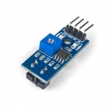 Sensor óptico infravermelho, muito usado em robôs seguidores de linha. O sensor emite o sinal infravermelho continuamente e capta a quantidade de sinal refletido. Dependendo da superfície a quantidade de sinal é maior ou menor e essa quantidade pode ser lida através de um microcontrolador, como uma placa Arduino, para ativar motores ou outros atuadores.