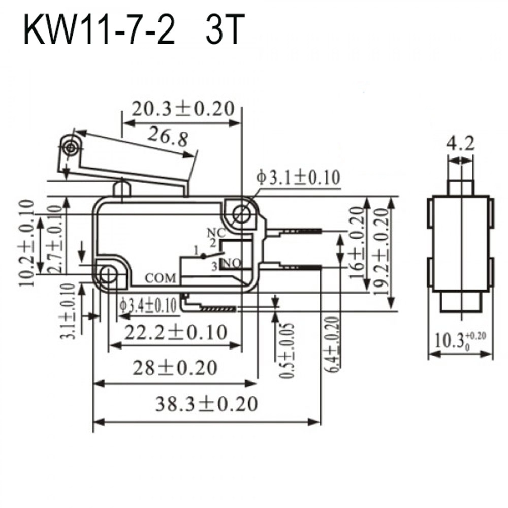 CHAVE MICRO SWITCH INV KW11-7-2 3T 16A 29MM COM ROLDANA