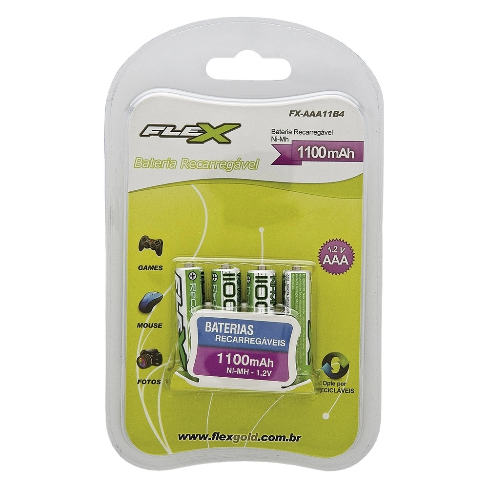 PILHA AAA RECARREGÁVEL NI-MH 1,2V 1000MAH CARTELA COM 4 UNIDADES