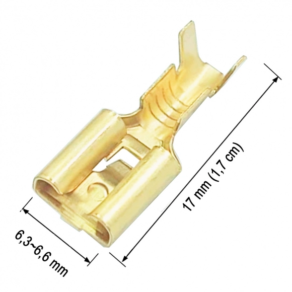Terminais são usados para suporte físico, para transferir energia, para sondagem de circuitos eletrônicos, e para transmitir informação ou até mesmo transmitir sonorização, terminal Fêmea Com Trava 4mm²O terminal fêmea com trava 4mm² apresenta um comprimento de 1,7 cm e é resistente a vibrações. Sua composição é em latão, proporcionando alta condutividade elétrica e ótima resistência à corrosão.