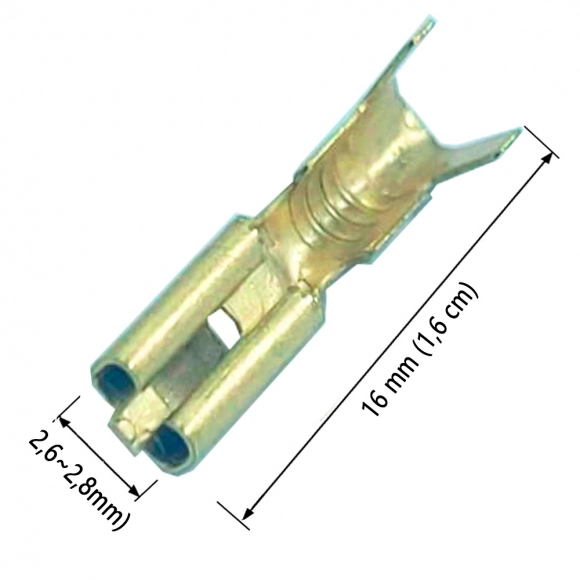 O terminal encaixe mini com trava apresenta um comprimento de 1,6 cm e é resistente a vibrações. Sua composição é em latão, proporcionando alta condutividade elétrica e ótima resistência à corrosão.