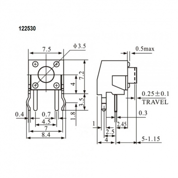 CHAVE DE TOQUE TÁCTIL 2 TERMINAIS 7MM EIXO 1,5MM