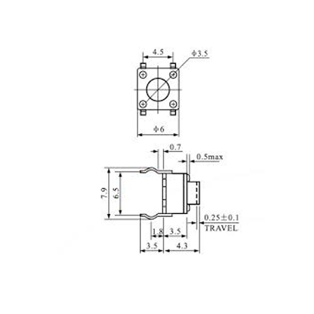 CHAVE DE TOQUE TÁCTIL 4 TERMINAIS 4.3MM